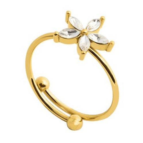 Margutta Flora - Anello placcato in oro con fiore e pietre bianche